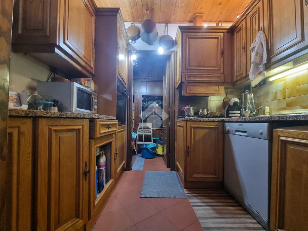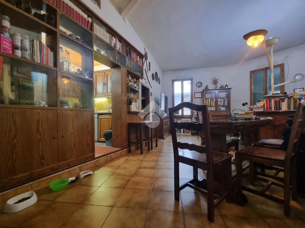 L'immobile si apre su un ingresso che conduce ad un ampio soggiorno composto da sala e cucina tinello con ripostiglio.